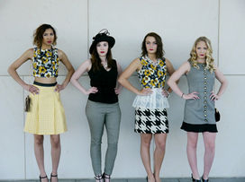 I found this beautiful grey, cream, and honey yellow floral fabric at Mood in NYC that I simply fell in love with; I used that floral as my main color palette. Along with the floral, I found different sizes of hounds tooth fabric and loved how they looked with the floral.